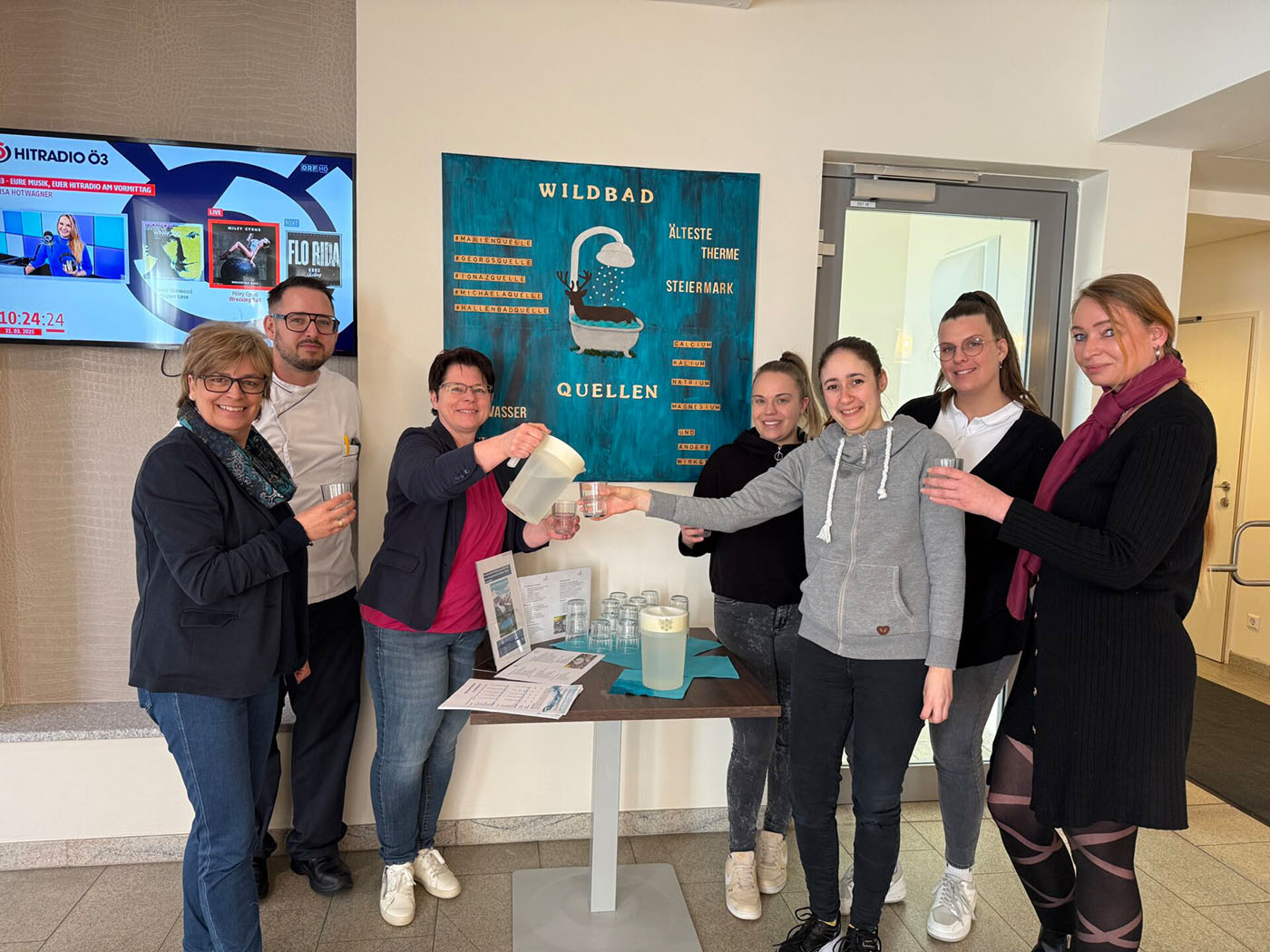 Am 22. März feierten die Mitarbeiter:innen der OptimaMed Gesundheitstherme Wildbad den Welttag des Wassers, der die Bedeutung dieses lebenswichtigen Elements für Gesundheit und Wohlbefinden in den Fokus rückt. Im OptimaMed Wildbad spielt Wasser eine zentrale Rolle, da der Standort unserer Einrichtung durch das Heilvorkommen des Wassers aus fünf Quellen entstanden ist. Wildbad gilt als älteste Heiltherme der Steiermark deren Ursprünge bis ins 15. Jahrhundert zurück reichen.