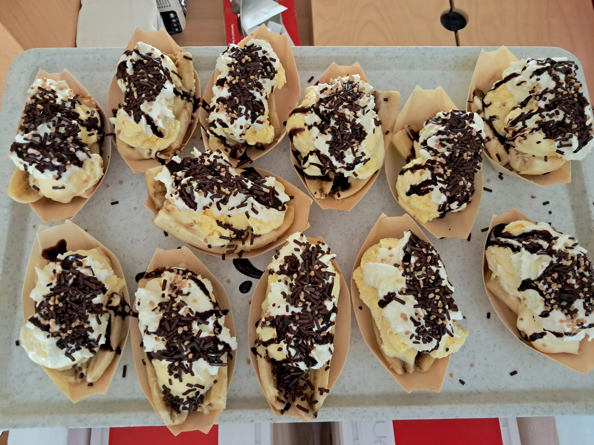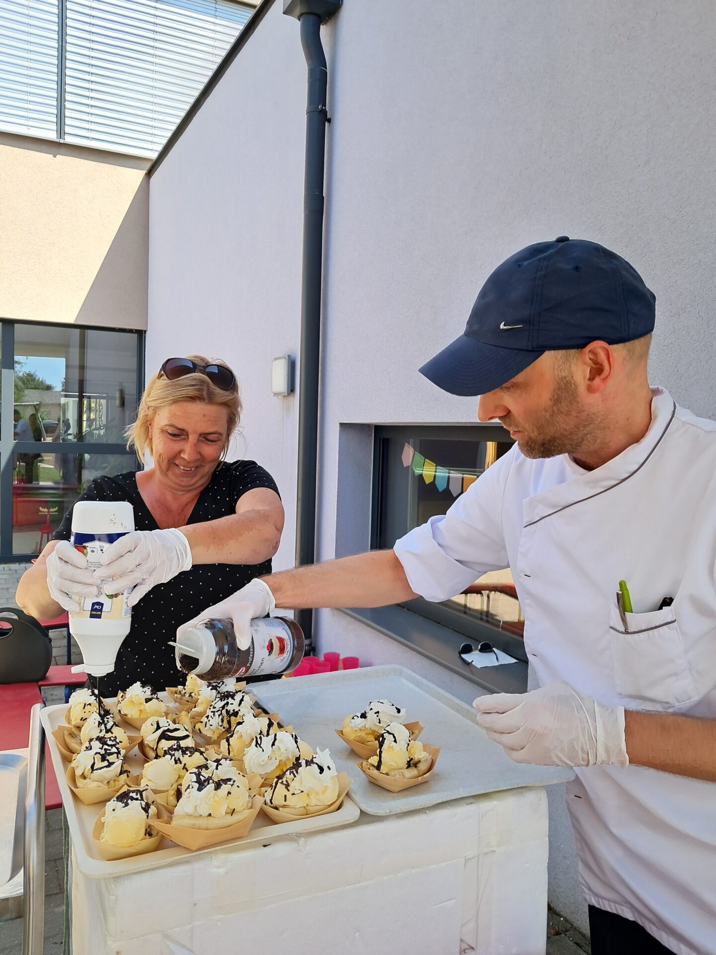 Das Küchenteam des OptimaMed Rehabilitationszentrums Kittsee überraschte die Kindergärten in Kittsee und Pama kürzlich mit Eis. Bei den sommerlichen Temperaturen freuten sich die Kinder besonders über die Vanille-Bananen-Schiffchen, die ihnen das Kittsee-Team brachte. Mit Schokoladesauce verziert waren die Schiffchen der Hit bei den Kindern und die Freude bei allen groß!