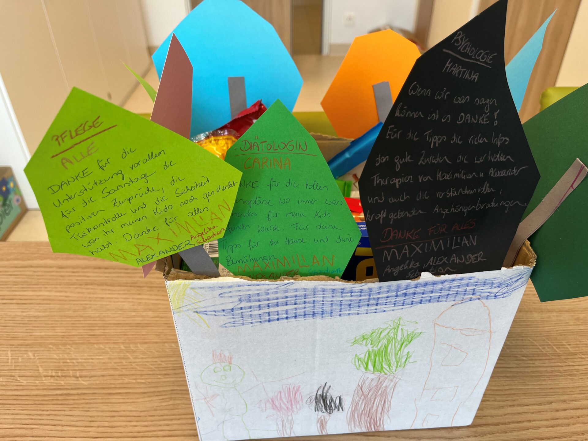 Das Team des OptimaMed Rehabilitationszentrums für Kinder und Jugendliche Wiesing durfte sich kürzlich über ein großes Dankeschön freuen. Familie Starzer war mit zwei Patientenkinder und einem Begleitkind in Wiesing und überreichte den Mitarbeiter:innen bei der Abreise eine große Box mit süßen Köstlichkeiten und handgeschriebenen Dankesbriefen an das Team. Wir bedanken uns sehr herzlich!