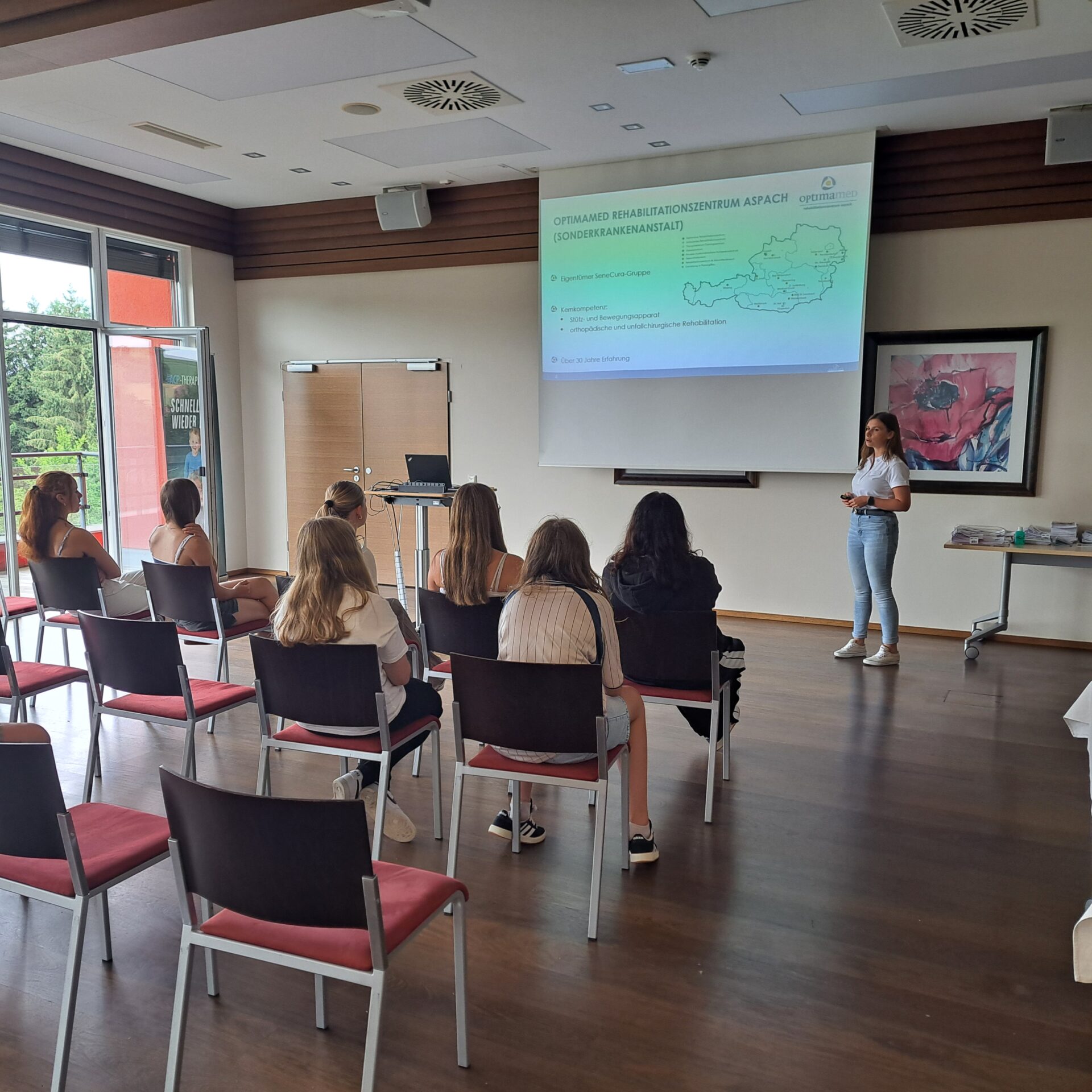 Am Freitag, den 27. Juni, hießen die Mitarbeiter:innen des OptimaMed Rehabilitationszentrums Aspach wieder die 4. Klassen der MS Aspach im Haus willkommen – eine schöne Tradition, die jedes Jahr gerne fortgesetzt wird. Die Schüler:innen bekamen einen spannenden Einblick in die verschiedenen Bereiche des Rehazentrums und lernten viel über Gesundheit und die damit verbundene Berufsvielfalt.