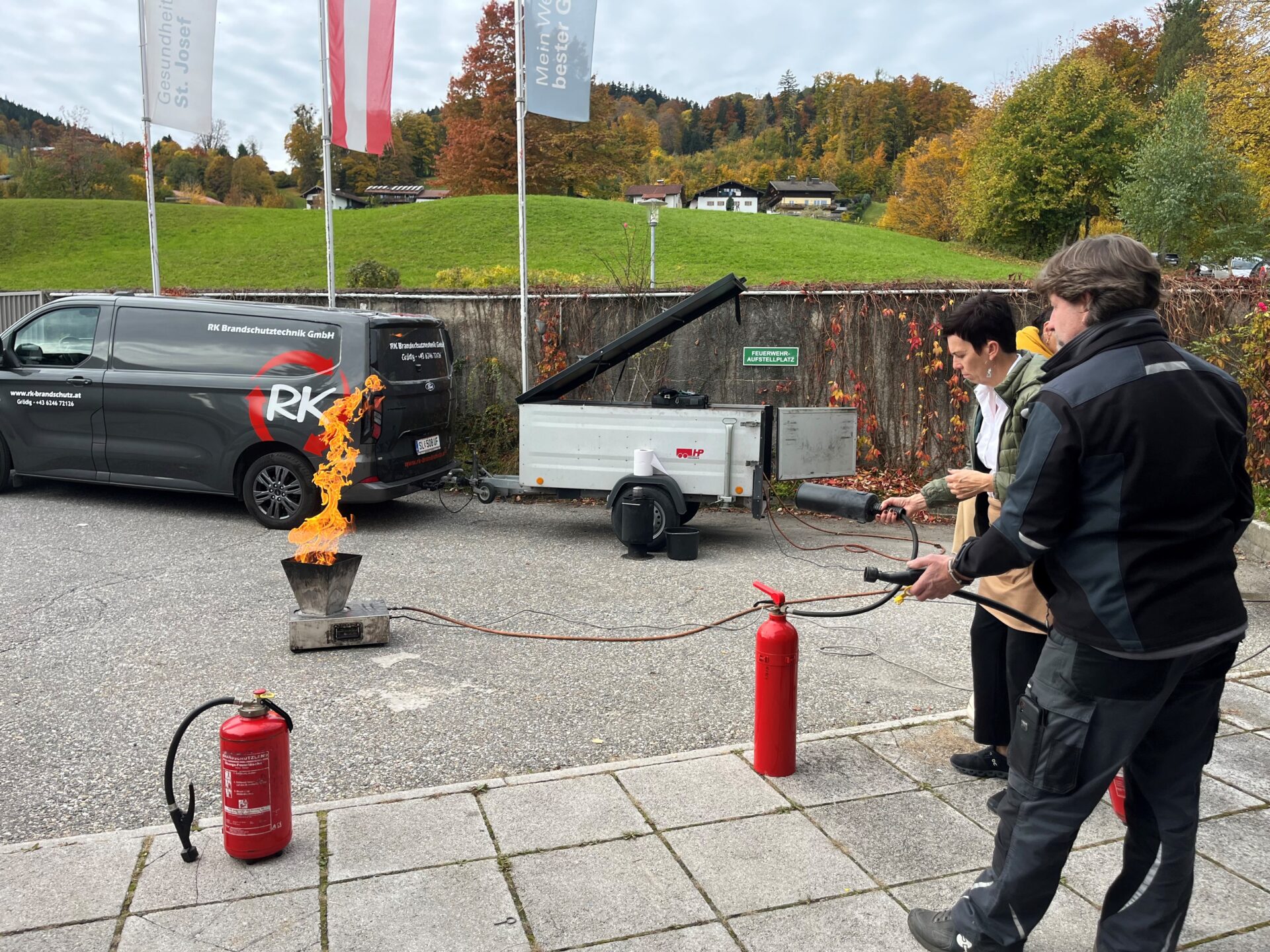 Unter fachkundiger Anleitung wurden theoretische Grundlagen wie Brandentstehung, Brandklassen, Löschmittel und Evakuierungsabläufe vermittelt. Im praktischen Teil konnten die Teilnehmer:innen anschließend den Umgang mit verschiedenen Feuerlöschern selbst erproben und den richtigen Einsatz im Notfall trainieren.