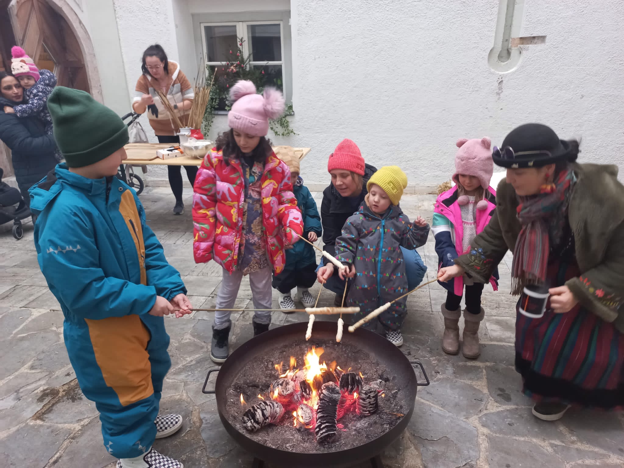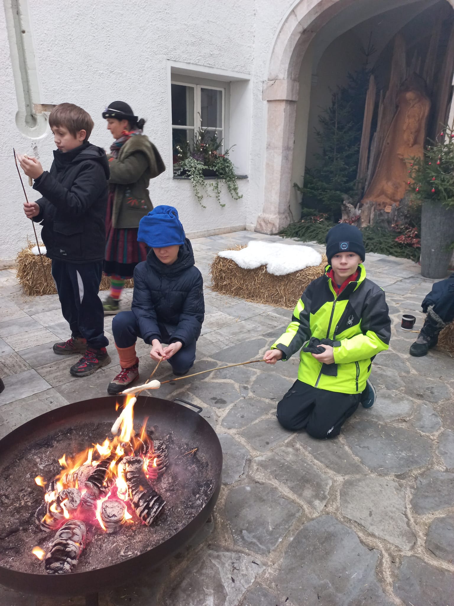 Am Donnerstag in der letzten Woche vor Weihnachten sind dann einige Patient:innen und Begleitpersonen gemeinsam mit Rezeptionsleitung Claudia Brandacher nach Fügen zum Schloss gefahren, um die Briefe direkt beim Christkindlpostamt abzugeben. Vom Schloss Fügen wurden sie dann noch zum Steckerlbrotggrillen und Punschtrinken eingeladen.