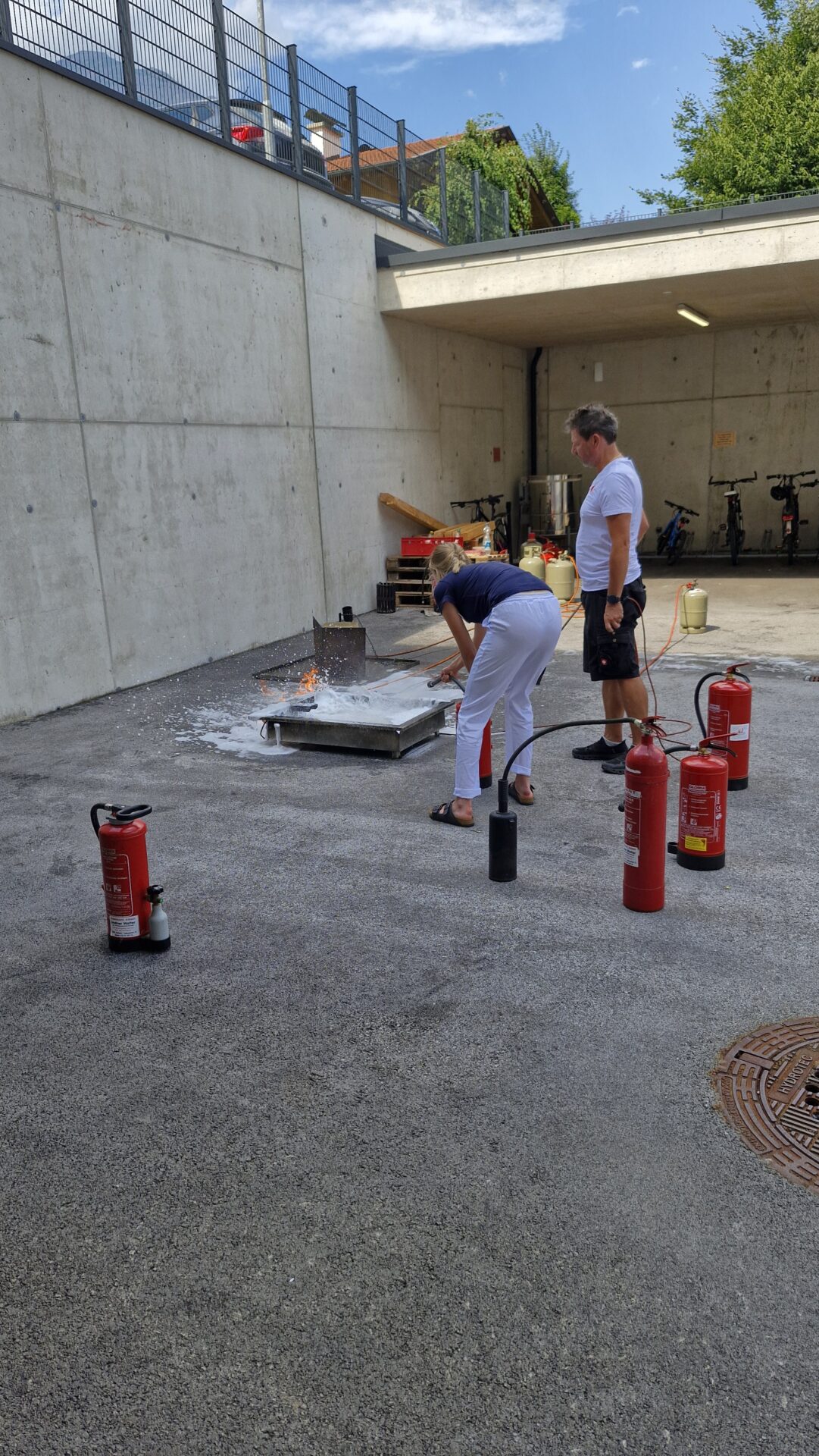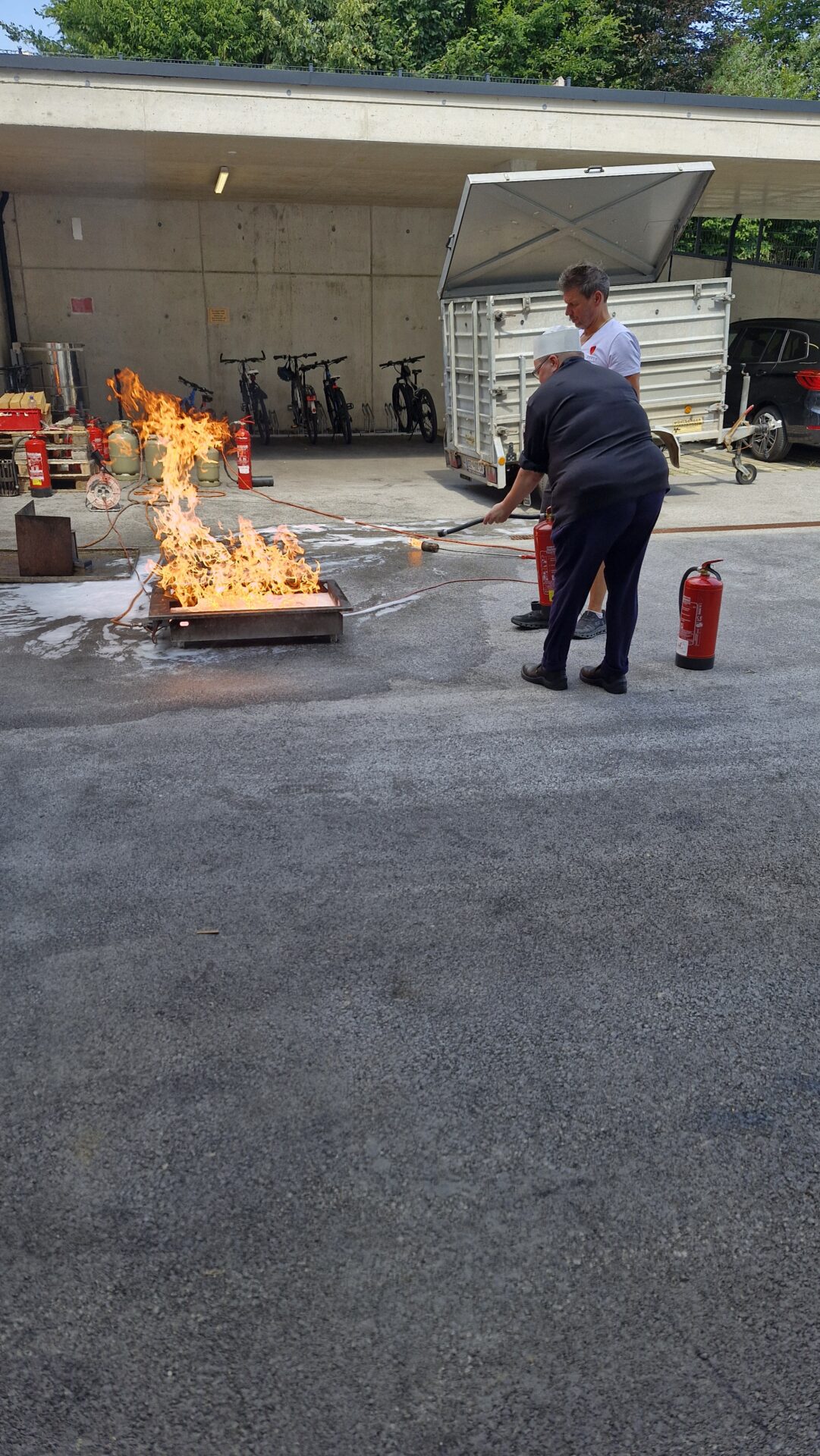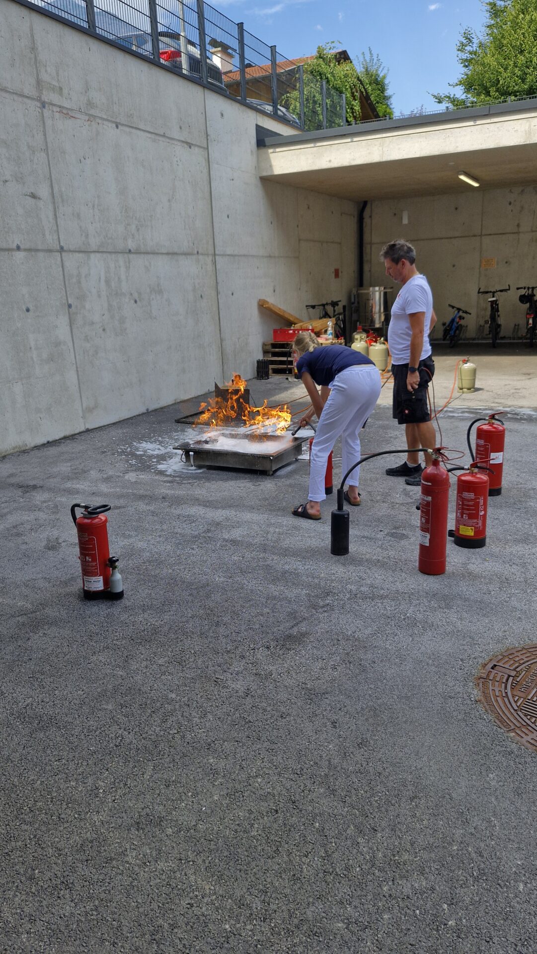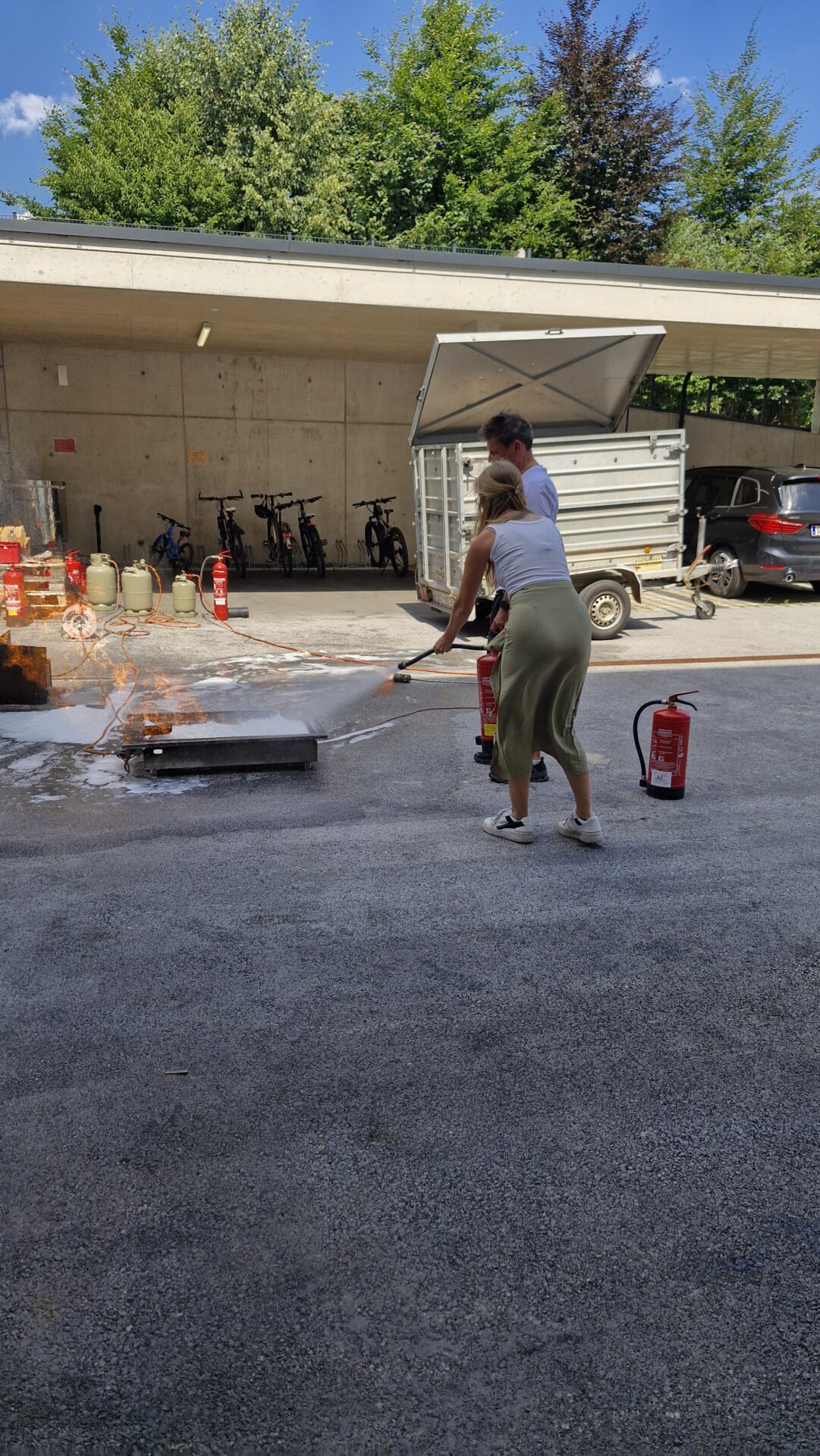 Um optimale Sicherheit im Ernstfall gewährleisten zu können, fand für die Mitarbeiter:innen des OptimaMed Rehabilitationszentrums für Kinder und Jugendliche Wiesing kürzlich eine umfangreiche Feuerlöschübung statt. Alle Mitarbeiter:innen übten am Firmenparkplatz den Umgang mit verschiedenen Arten von Feuerlöschern, um Brände wirkungsvoll und rasch einzudämmen.
