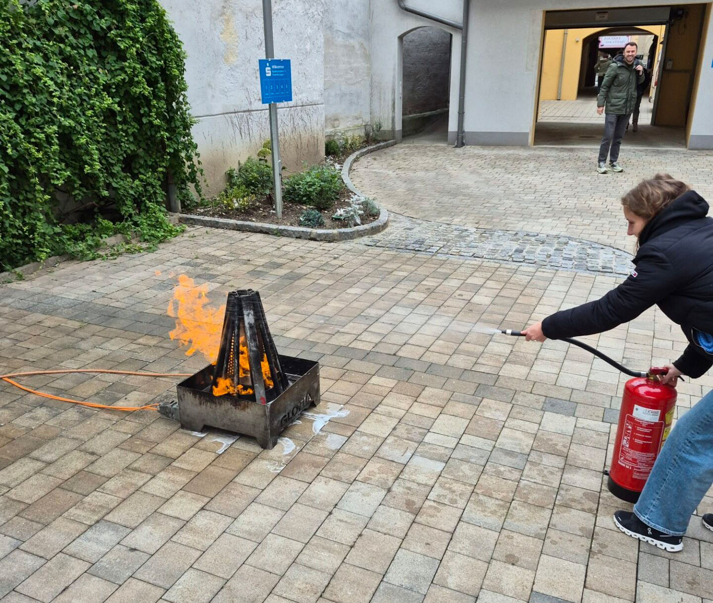 Neben wertvollen Informationen zur sicheren Handhabung von Feuerlöschern, stand vor allem der praktische Teil im Fokus. Jede/r Teilnehmer/in hatte die Möglichkeit, selbst aktiv zu werden und einen Feuerlöscher zu benutzen, um ein kleines Feuer zu löschen – eine spannende Erfahrung, die das Gelernte direkt greifbar machte.