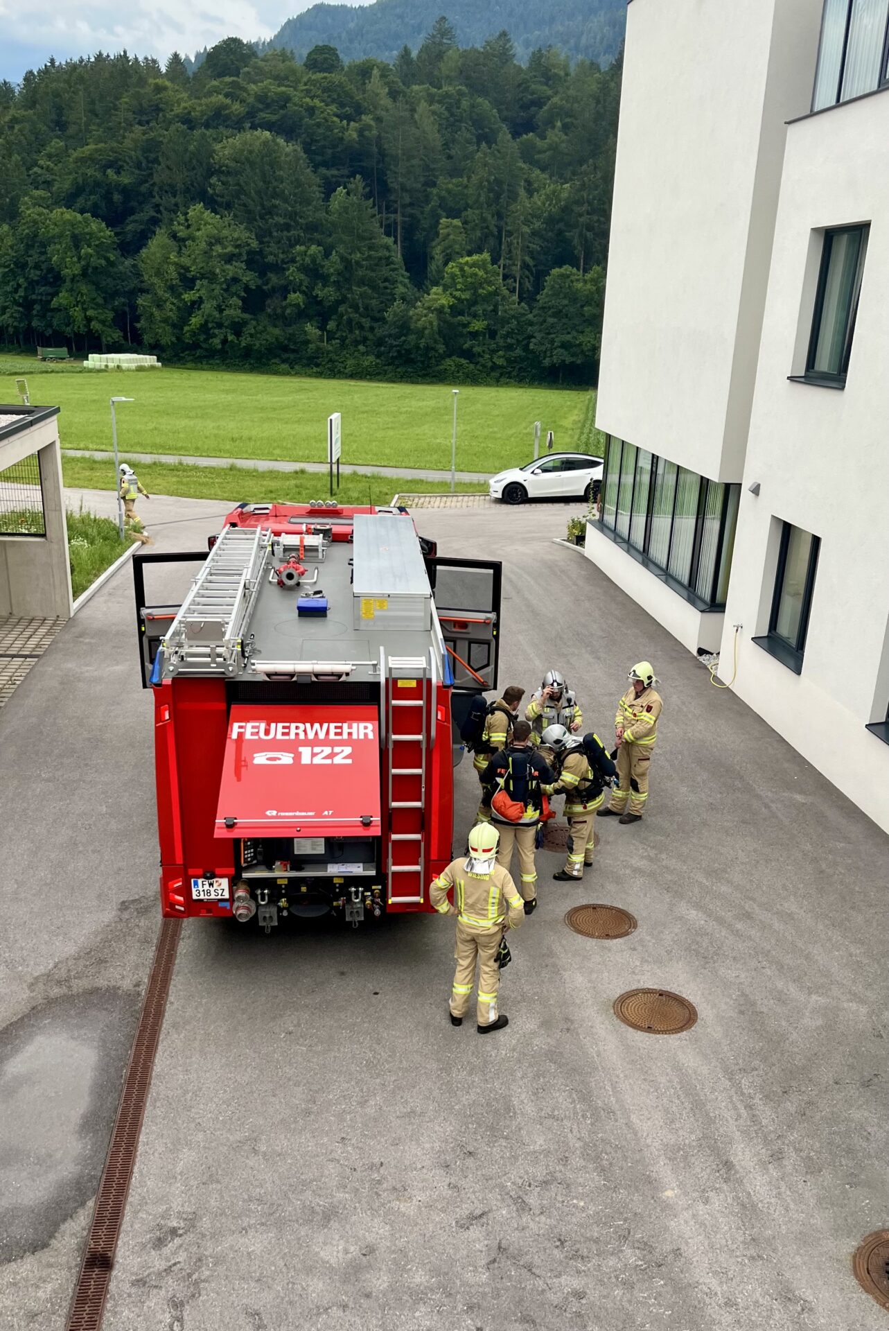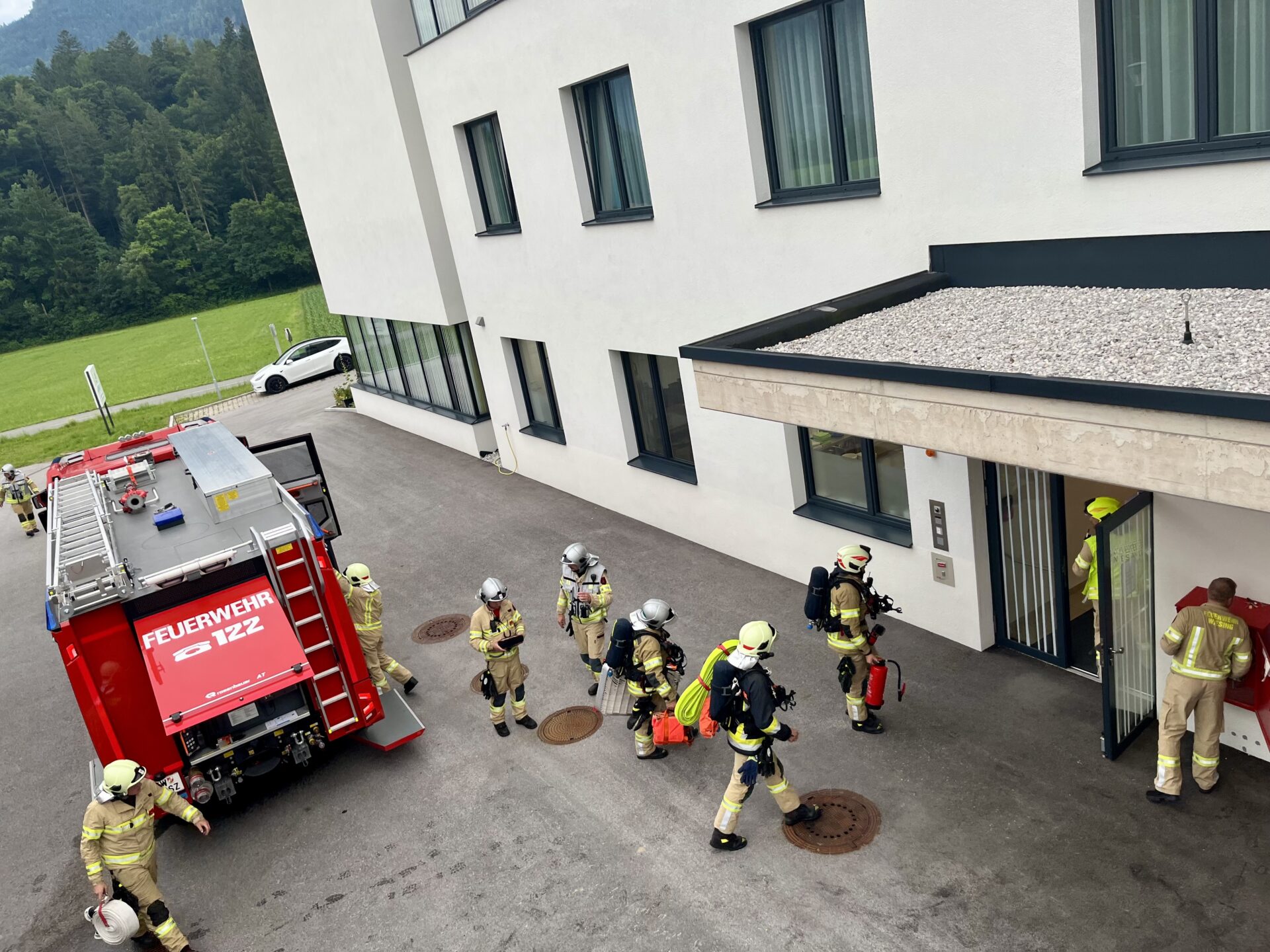 Feuerwehrübung im OptimaMed Rehabilitationszentrum für Kinder und Jugendliche Wiesing