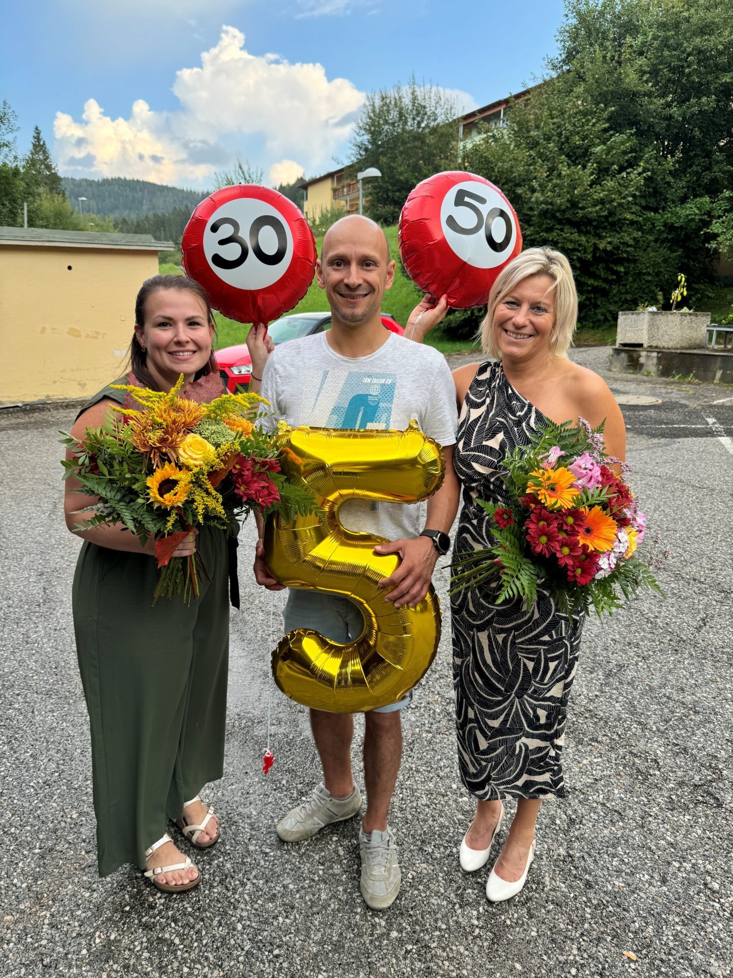 Letztens lud die kollegiale Führung des OptimaMed Rehabilitationszentrums Raxblick die Mitarbeiter:innen zu einer tollen Grillfeier ein. Für die Feier gab es gleich mehrere Anlässe: Verwaltungsdirektorin Dilay Karabat feierte ihren 30er, Pflegedirektorin Bettina Digruber ihren 50er und alle drei KoFü-Mitglieder (mit Joachim Klikovicz) jeweils das 5-jährige Dienstjubiläum. So trafen sich alle zu einem fröhlichem Beisammensein mit leckerem Essen, anregenden Gesprächen und besonderen Ehrungen.