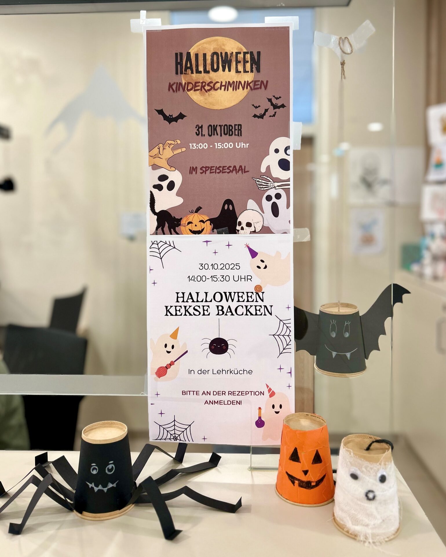 In diesem Jahr wurde im OptimaMed Rehabilitationszentrum für Kinder und Jugendliche Wiesing ein tolles Halloween-Programm für die kleinen Patient:innen organisiert! Letzten Donnerstag starteten wir mit dem Kekse backen, bei dem Geister, Spinnen und andere gruselige Leckereien entstanden. Beim bunten Kinderschminken verwandelten sich die Kinder am Freitag in ihre Lieblings-Halloween-Figuren und zauberten in der Kochgruppe leckere Würstchenmumien und Bananengeister. Auch unsere Mitarbeiter:innen machten beim „Kinderschminken“ begeistert mit – so wurde die ganze Kinderreha zu einem fröhlich-gruseligen Ort voller Spaß, Farbe und Halloween-Stimmung.