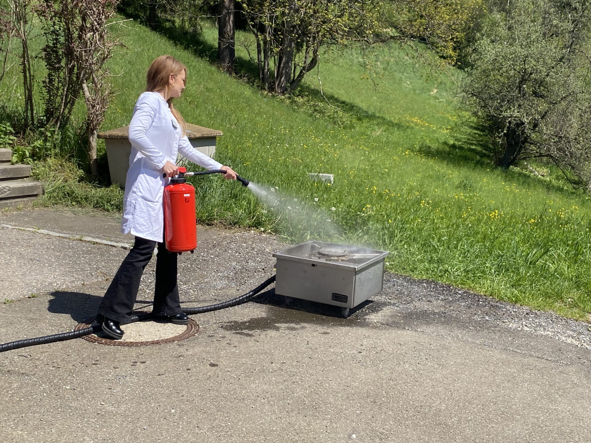 Zu Beginn wurden die Teilnehmer:innen über die verschiedenen Brandgefahren sowie die richtige Handhabung der Feuerlöscher und Löschsysteme informiert. Im praktischen Teil der Übung wurde die Handhabung der Feuerlöscher geübt und das richtige Vorgehen bei einem Brand in einem öffentlichen Bereich demonstriert.