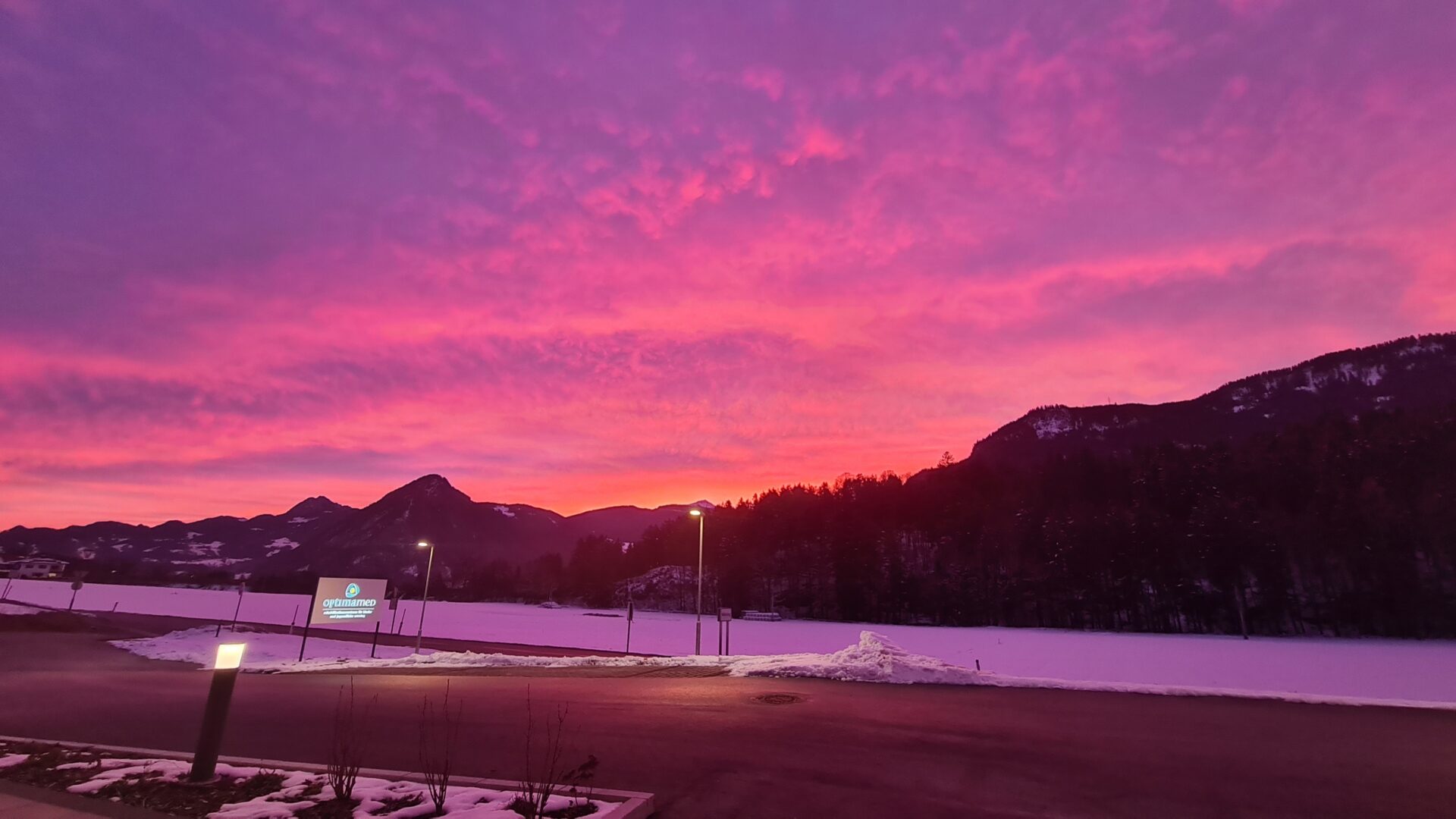 Am frühen Morgen fing ein Patient des OptimaMed Rehabilitationszentrums für Kinder und Jugendliche Wiesing letztens eine beeindruckende Morgenstimmung ein. Der Himmel erstrahlte in einem kräftigen Pink mit Lilatönen. Das Foto des Patienten begeisterte die Patient:innen und die Mitarbeiter:innen des Hauses besonders. „Das war richtig magisch!“, schwärmte ein junges Mädchen und strahlte. Der farbenfrohe Himmel sorgte für einen freud- und kraftvollen Start in den Tag.