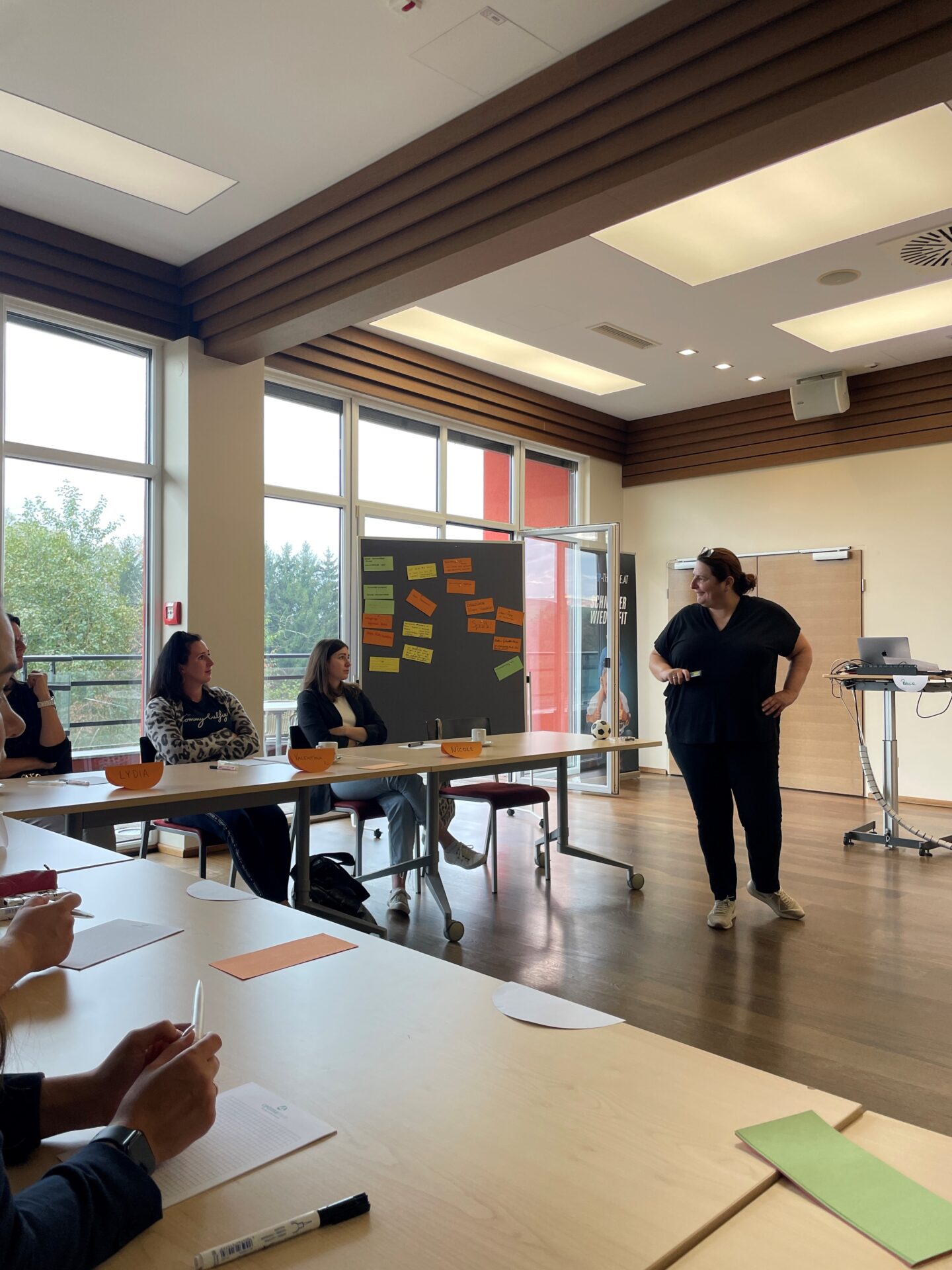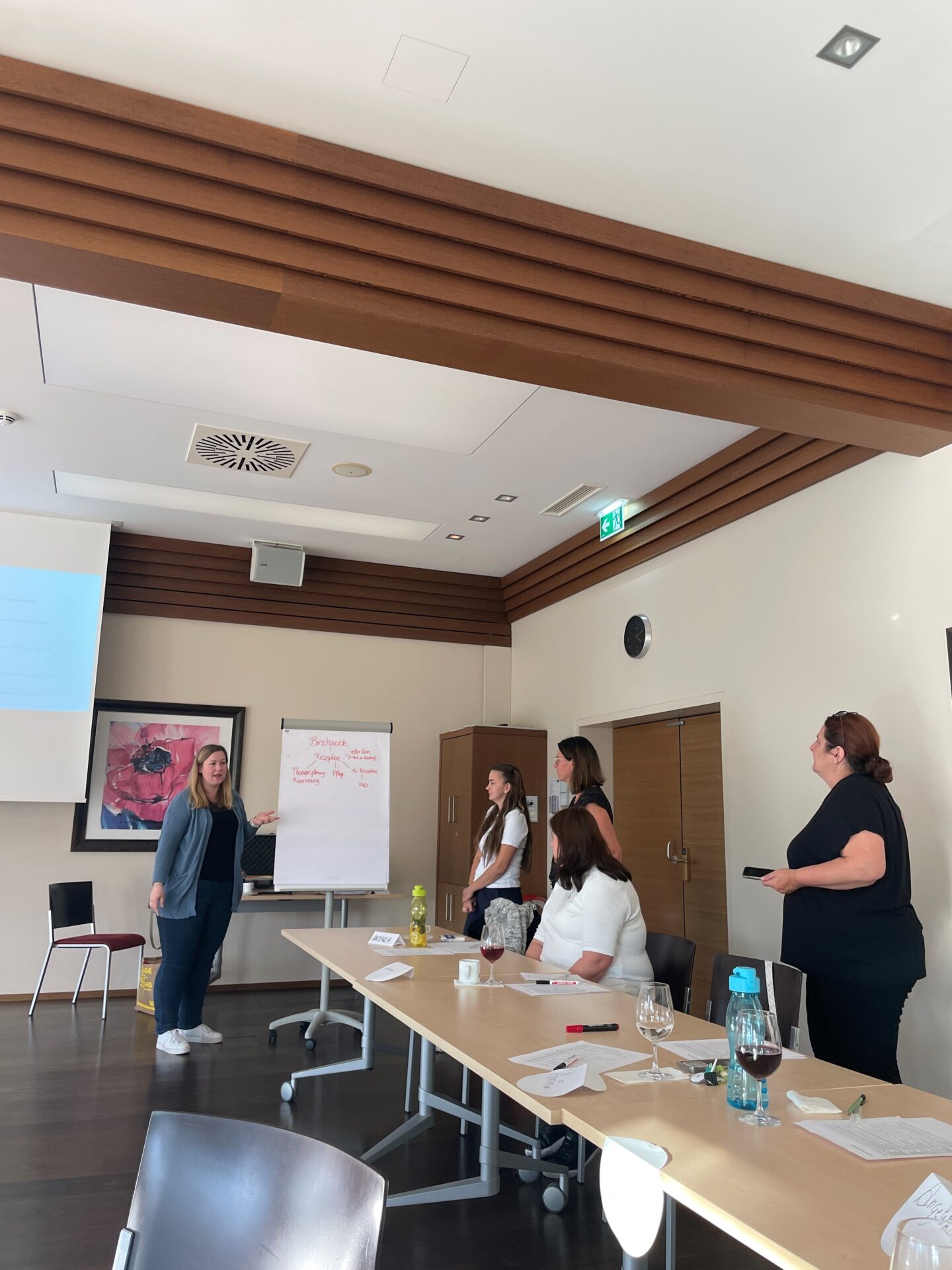 „Souverän im Umgang mit Beschwerden und Reklamationen“ – so lautete das Thema bei der Schulung für die Mitarbeiter:innen an der Rezeption des OptimaMed Rehabilitationszentrums Aspach. Auch Kolleginnen und Kollegen aus den OptimaMed Einrichtungen Bad Wimsbach, St. Josef und Wiesing an dieser Fortbildung teil, die der Steigerung von Zufriedenheit bei Patientinnen und Patienten dient. Dabei wurden Grundlagen im Reklamationsmanagement vorgestellt, Formulierungen trainiert und Rollenübungen durchgeführt. Dank der tollen Trainerin, Patricia Öhner, konnten die Mitarbeiter:innen der OptimaMed-Häuser am Ende des Tages viele hilfreiche Ratschläge mitnehmen, die Ihnen den Umgang mit Herausforderungen in der Kommunikation erleichtern und rasch kundenfreundliche Lösungen finden lassen.