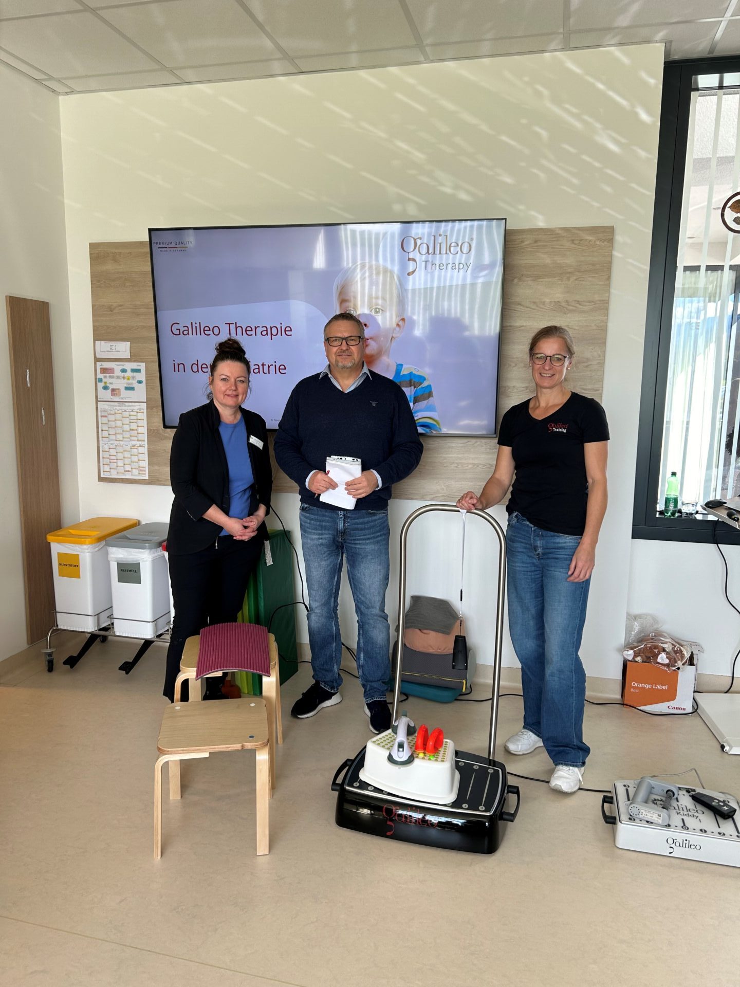 Ende Oktober fand im OptimaMed Rehabilitationszentrum für Kinder und Jugendliche Wiesing ein Workshop der Firma „Süss Medizintechnik“ zum Gerät Galileo statt. Im Haus wird dieses Gerät ebenso in der Therapie verwendet und so nahmen auch die Physiotherapeut:innen und Sportwissenschaftler:innen daran teil. Eingeladen waren auch auswärtige Therapeutinnen und Therapeuten sowie Eltern mit ihren Kindern, die das Gerät verwenden.